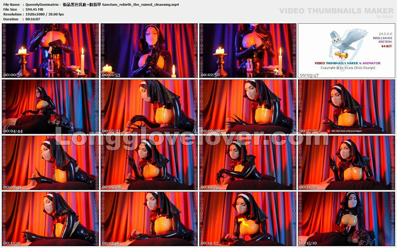 QueenlyDominatrix是我关注了很久的一个拉美女主,身材火辣,很正统的sm玩法,这次的乳胶衣+乳胶长手套+假指甲的修女cos非常带感